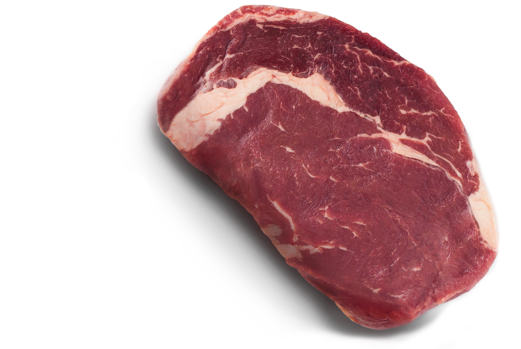 Толстый край на кости "RIBEYE" – это премиальный отруб из переднего отдела верхней части грудины с 6 по 12 ребро животного, Его название произошло из совокупности двух английских слов "rib" и "eye". Это связано с тем, что на срезе он напоминает форму глаза где зрачком выступает жировое образование. Отруб, из которого нарезается стейк "RIBEYE", находится на пересечении 6 мышц, которые наименьшим образом задействованы в движении животного. Все это имеет принципиальное значение для вкусовых качеств стейка: множество жировых прослоек (мраморность мяса) тают при приготовлении стейка чем вызывают естественное смягчение мышечных волокн, и мясо получается необычайно сочным и нежным, приобретая неповторимый утонченный вкус.